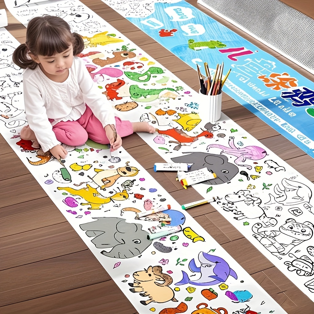 Kit de desen pentru copii, sul de hârtie pentru graffiti lung de 3 metri, pictură diy, inspiră imaginația, cadou de zi de naștere, cadou pentru halloween, thanksgiving și crăciun, cadou ideal de anul nou pentru copii de peste 3 ani, sul creativ de mâzgălit și pictat pentru a stimula creativitatea